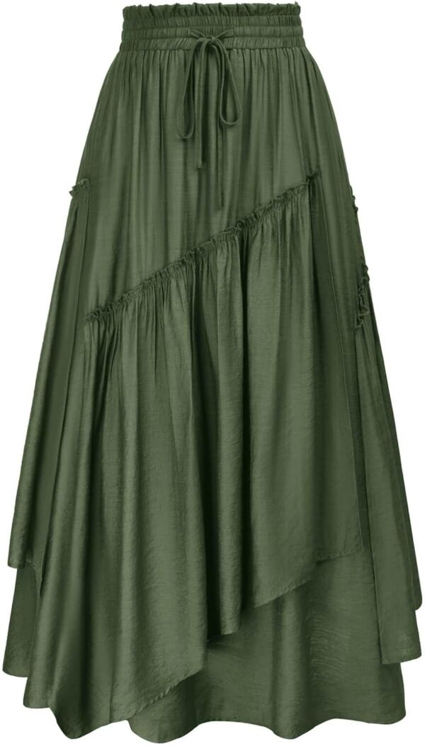 Feature – Designed with side-seam pockets, elastic high waist with drawstring, ankle length flowy a-line hem, slant seam overlay tiered, with lined not see through