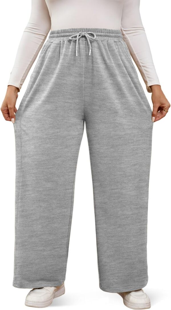 • Stylish: Plus size wide leg pants for women, straight wide leg style, elastic waistband with drawstring, two side pockets. Complemented by an adjustable drawstring for stylish comfort and style. Extra-wide elastic waistband for enhanced secure fit. These plus size workout pants are designed for a casual and comfortable look