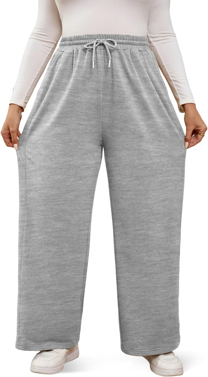 Plus Size Wide Leg Pants for Women Yoga Sweatpants Lounge High Waisted Drawstring Baggy Pants with Pockets