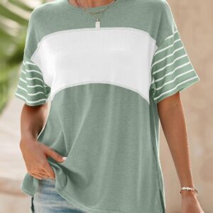 • Feature: Color block tops, short sleeve tunic, round neck shirts, casual, cute and stylish. Color block design is classic and never out of the date. The stitching of classic colors has a strong contrast, which makes you look more cute and attractive.