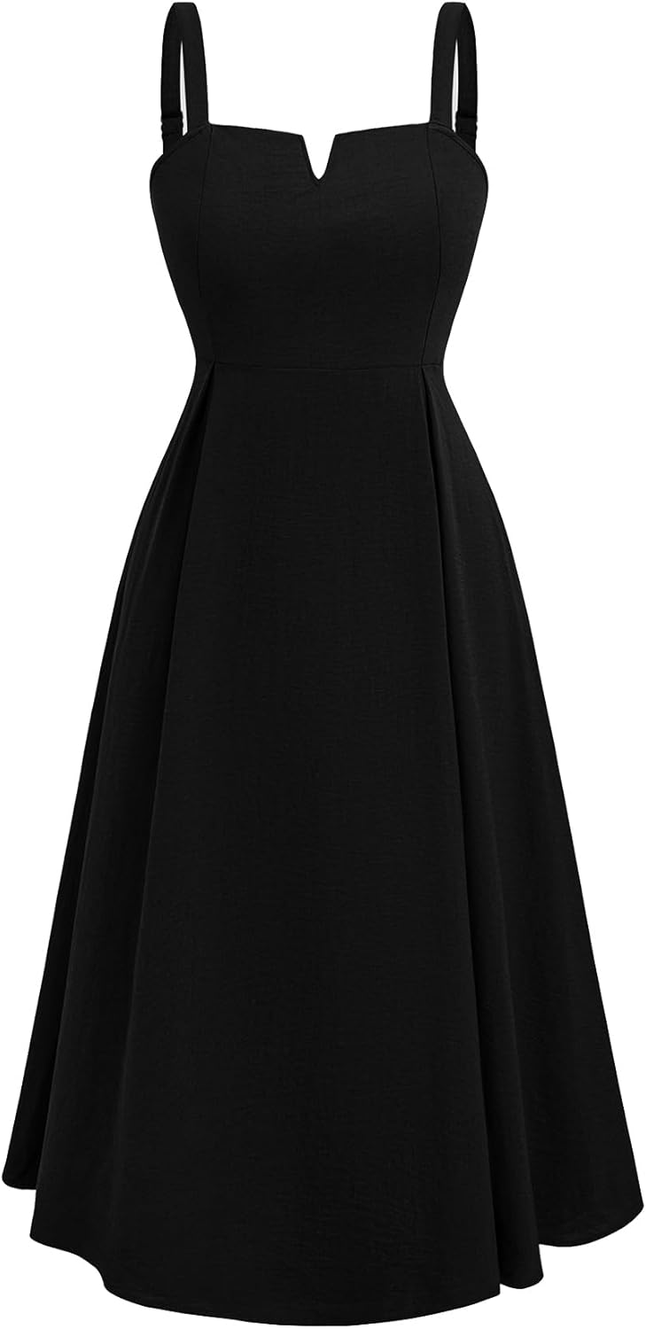 • Design: The plus size dresses for curvy women features two side pockets, v neck, adjustable spaghetti straps, smocked back, high waist line under bust hides the tummy, pleated a-line cut for easy movement and accentuates your curves