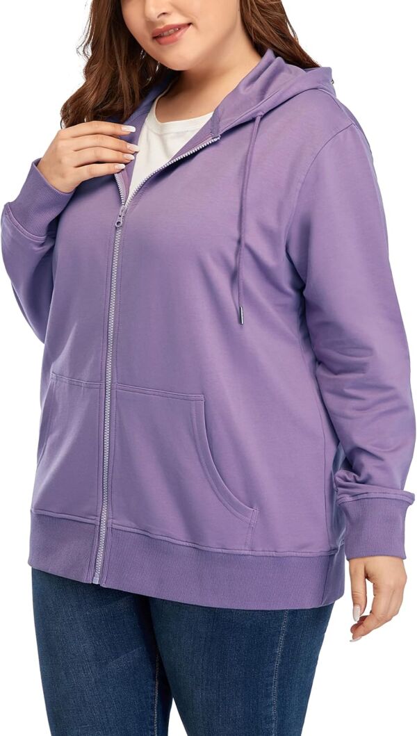 Women Plus Size Full Zip-Up Hoodie Jacket Cotton Sweatshirt