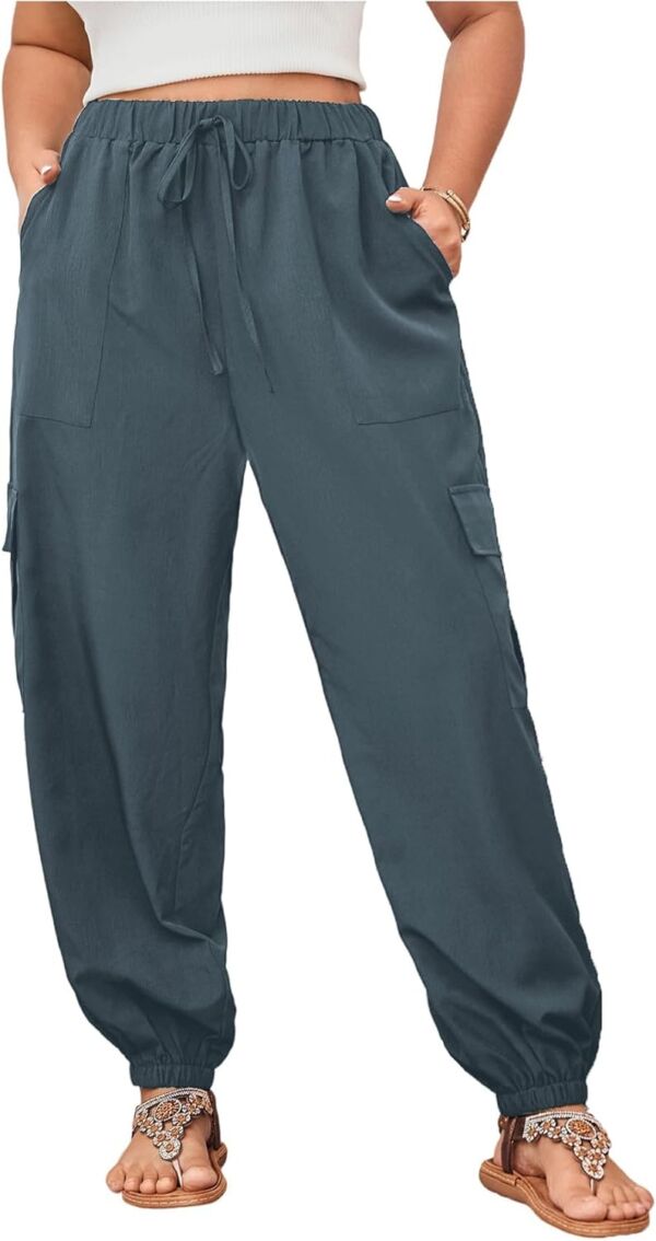 Women Plus Size High Waist Cargo Pants Casual Loose Baggy Jogger Pants Trousers Pockets