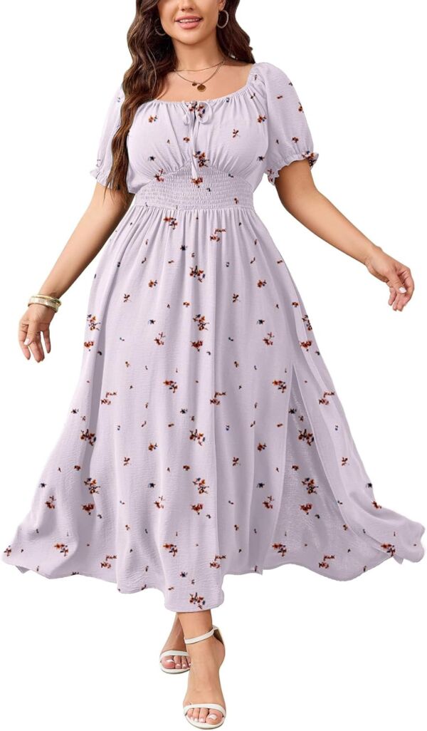 Chic Design: Plus Size Milkmaid Dress/ Dresses For Women 2025 / Plus Size Holiday Dress/ Plus Size Dresses For Curvy Women/ Smocked Dress/ Plus Size Dress With Split Hem/ Womens Long Flowy Dress/ Boho Dress For Women/ Fit And Flare Dress/ Square Neck Short Dress For Women/ Beach Vacation Dress/ Off Shoulder Dress/ A Line Dress For Women
