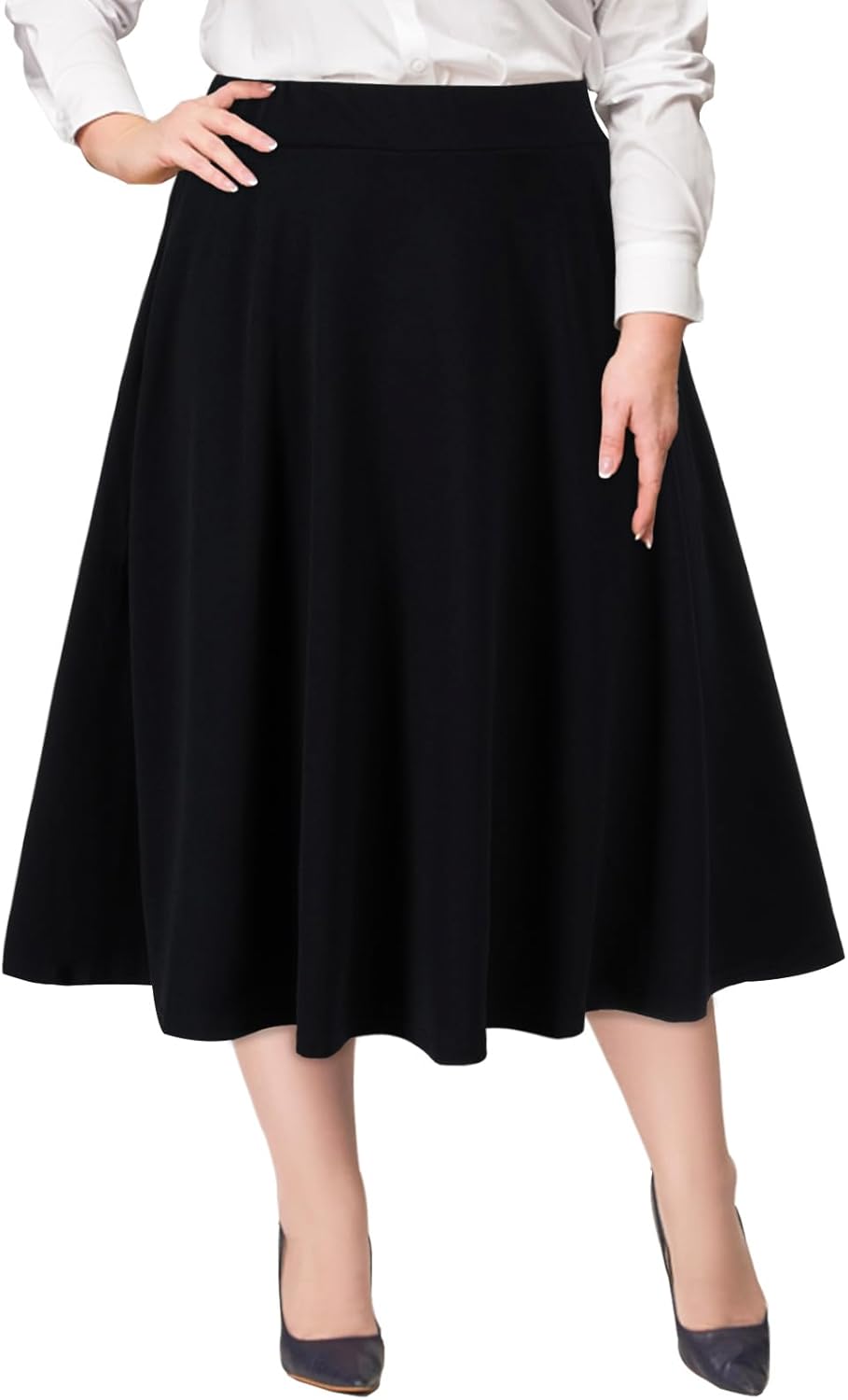 Hidden Side Pockets & A-Line Design: This plus size midi skirt features hidden side pockets that offering convenient storage for your phone, keys, or small essentials without adding bulk. This A-line design of the womens midi skirt naturally flows when you walk, making your curves more beautiful