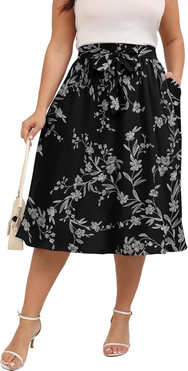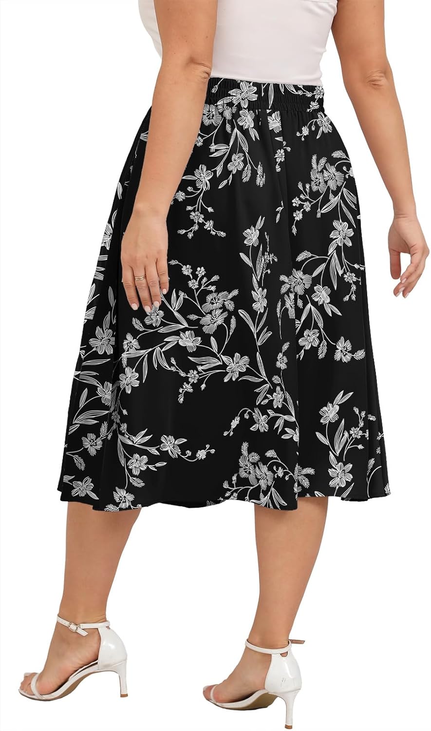 Features: Our plus size knee length skirts have pleated elastic high-waisted design, two deep pockets, Adjustable tie knot cute and practical! Elastic waistband with drawstring accommodates various body types and all ages!