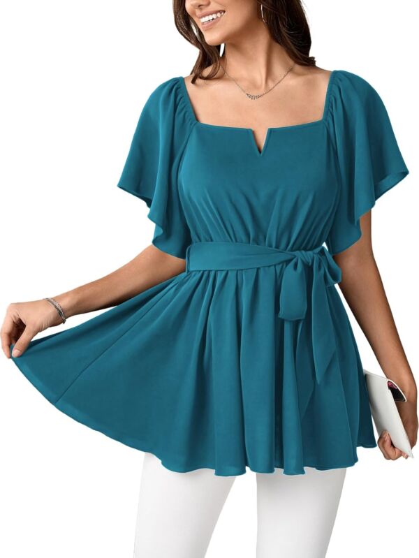 • MATERIAL:Womens plus size peplum blouses and tops dressy are made of lightweight and soft fabric, great stretchy & skin-friendly, not shrinking. A cute & flowy & flattering summer top plus size
