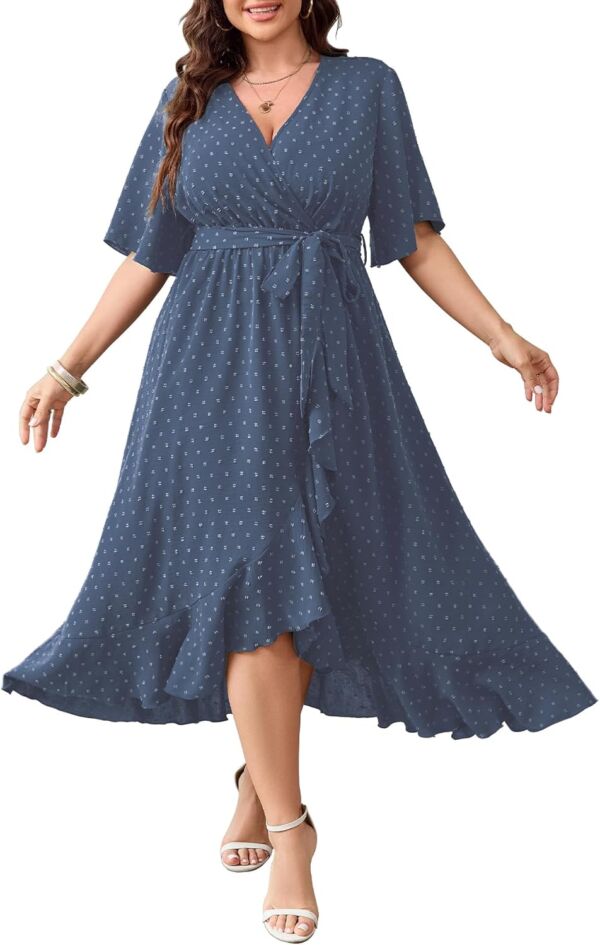 MATCH & OCCASION: Plus size v neck short sleeve dress is suitable for spring and summer, and can be matched with sandals, high heels, necklaces, earrings, clutches, etc. Plus size formal dresses are very suitable for wedding guests, cocktail parties, dances, night out, banquets, homecoming, graduation ceremonies, dinners, vacations, family gatherings, date nights, schools, offices and other occasions. Plus size wrap flowy dress is simple and versatile, it easily creates a trendy and elegant look