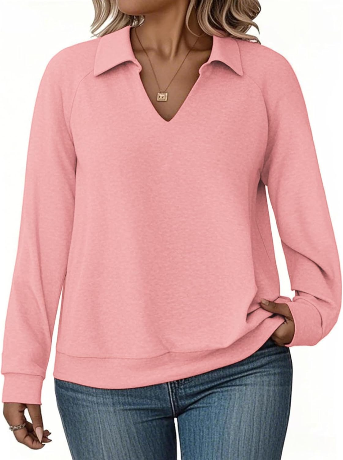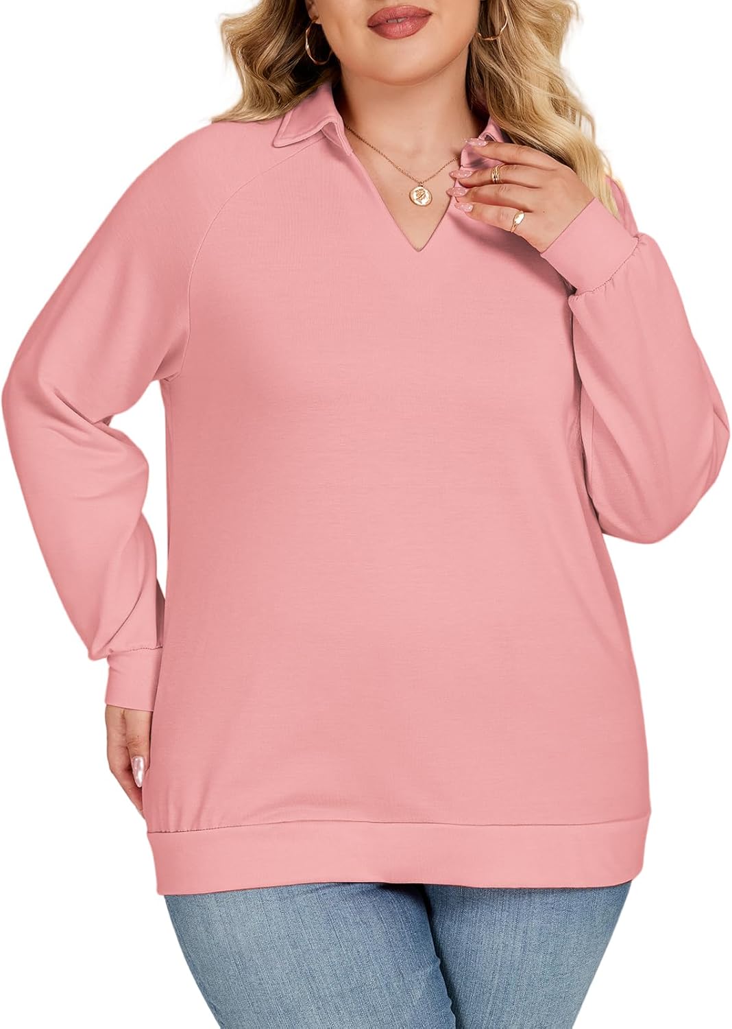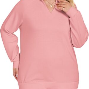 Women Plus-Size Sweatshirts Casual Collared V Neck Polo Tops Long Sleeve Pullover Tunics Loose Lightweight Blouses