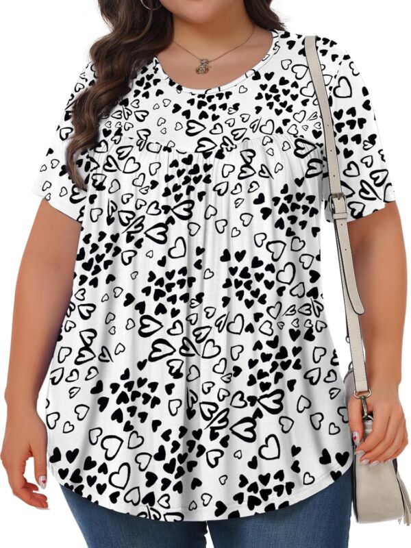 Features: Loose fit plus size tops, soft feeling against skin, crew neck and front pleated design, make you look cute, shirt has enough length, easy to hide the belly and buttocks