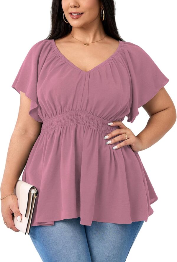 • Design: This plus size babydoll tops for women is a simple fashion design, elegant. V neck short sleeve top, peplum tops, smocked tops, ruffle sleeve, pleated design, tunic tops for women loose fit dressy, let this babydoll peplum tops more flowy and elegant