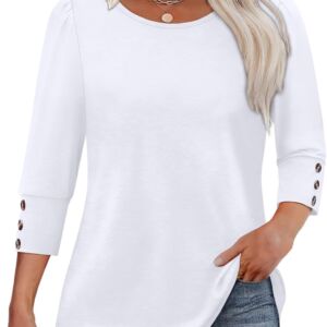 Great Features: fall outfits for women 2025,3/4 length sleeve womens tops, plus size spring clothes for women,womens shirts dressy casual,blouses for women business work,cute button details on cuff,simple scooped neck with curved hemline